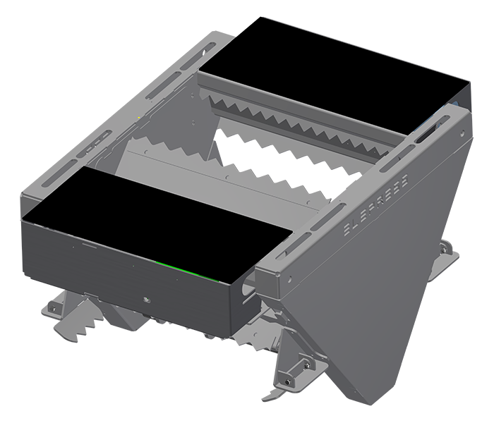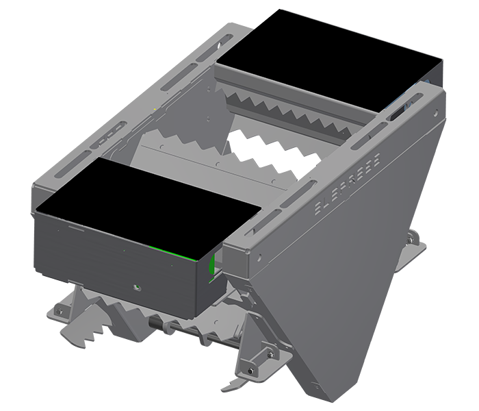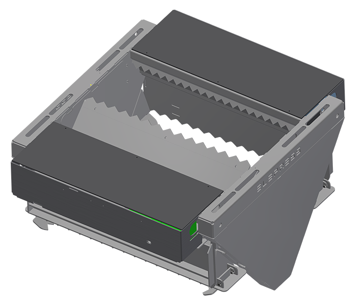 Zodra de hoogte van het gestorte afval in de container een bepaald punt heeft bereikt, komt Elepress in actie. Het driehoekige persblok draait om twee assen in de richting van de afvalzak en drukt deze stevig aan. Na iedere storting repeteert de beweging zich. En dat zorgt voor een verdelende werking op het samengeperste afval.
